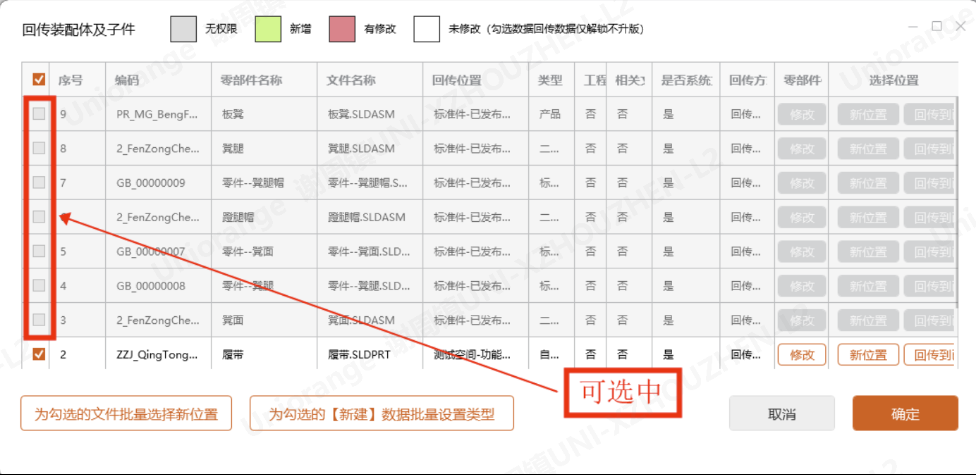 回传体验显著优化:操作界面更直观,批量设置与权限逻辑更智能,无权限数据也可灵活处理,并新增STEP文件预览支持,使数据检核一目了然。同时,通过延长缓存轮询时间和新增中断修复机制,有效解决“编码已存在”等报错,大幅提升大文件回传的成功率与稳定性,为您的设计数据保驾护航。