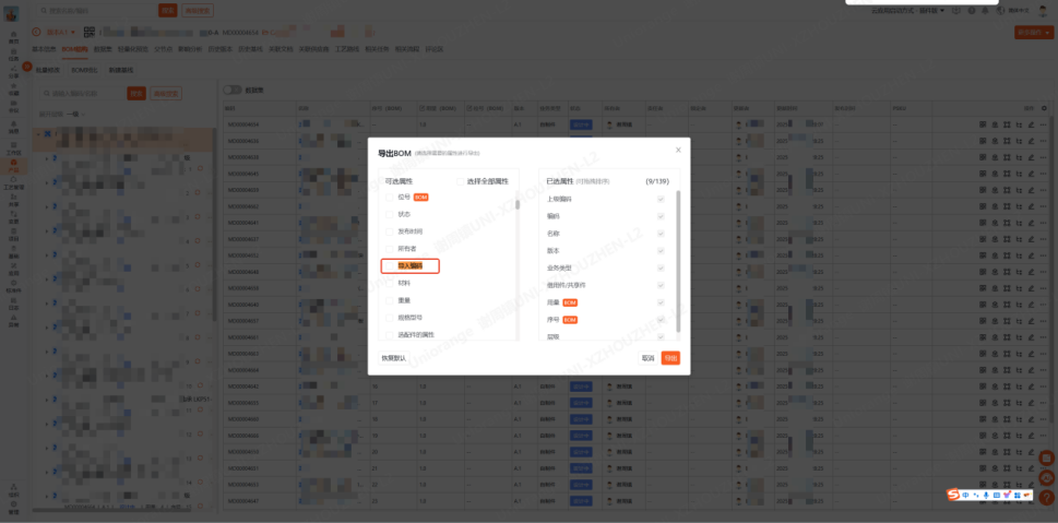 1.1 导出时可根据需要进行导出字段的配置,支持“导入编码”字段的选择和导出,数据交付更精准、更合规。