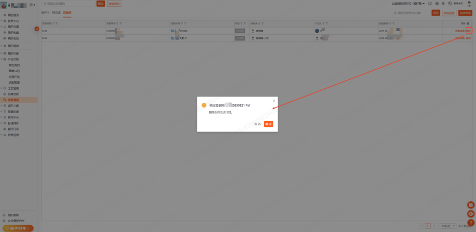 本次变更管理模块优化,支持对已关闭的变更单执行删除操作。此功能显著提升了系统的数据管理灵活性,允许您清理无效或冗余的历史数据,有效维护系统数据的整洁性与准确性,同时满足更严格的合规与管理审计需求。
