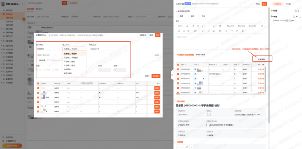 在流程节点中,可以对需要审核的数据进行批量编辑修改,并提供快捷方便的批量修改机制,可大幅提升审批的工作效率,为企业降本增效。