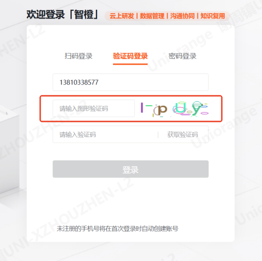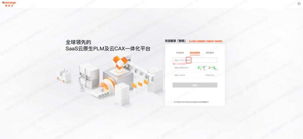 第二步:选择验证码登录,输入手机号码,验证码登录平台,登录成功选择企业进入智橙平台首页;