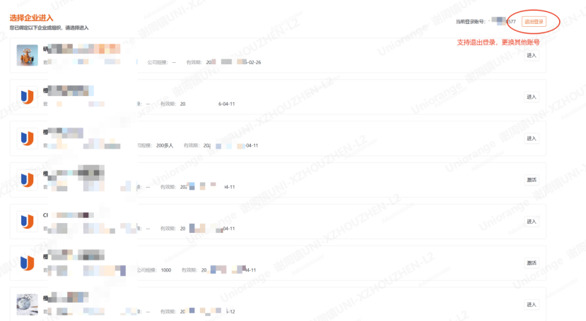 3.2 切换企业时,若选择的企业时“未激活”状态,会自动激活并切换成功。
