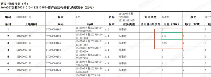 BOM导出Excel表格的内容也同步兼容支持整数和小数。