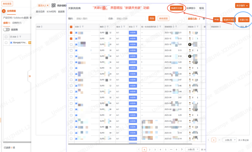 解决在关联界面需要增加供应商的需求,减少操作路径,提升操作效率。